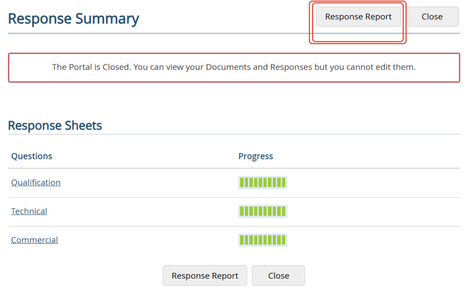 Click the Response Report button to view a detailed breakdown of everything you’ve submitted.